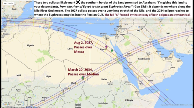 above shows two 100% solar Eclipses making the Hebrew letter X, which is the
